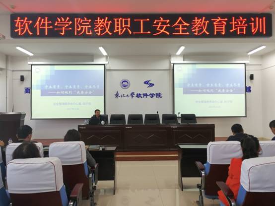 11月1日,球王会体育官方网在浑南校区信息学馆B520会议室开展了教职工安全教育培训,校安全管理委员会办公室主任尚子扬应邀作专题报告。学院领导班子成员及全体教工参加了此次培训。