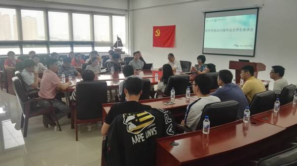 6月13日上午,球王会体育官方网举行2018届毕业生师生座谈会。院长王兴伟、党委书记陈欢、副院长于瑞云、副院长程维、副院长庞洪江、党委副书记兼副院长刘春风、院长助理王瑞平以及各系、办公室负责人参加了座谈会。