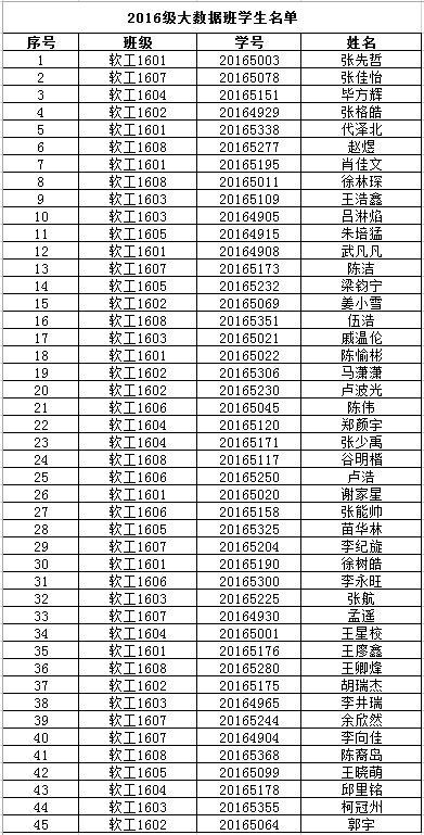 现公布球王会体育官方网2016级本科生大数据班及互联网金融班学生名单如下: