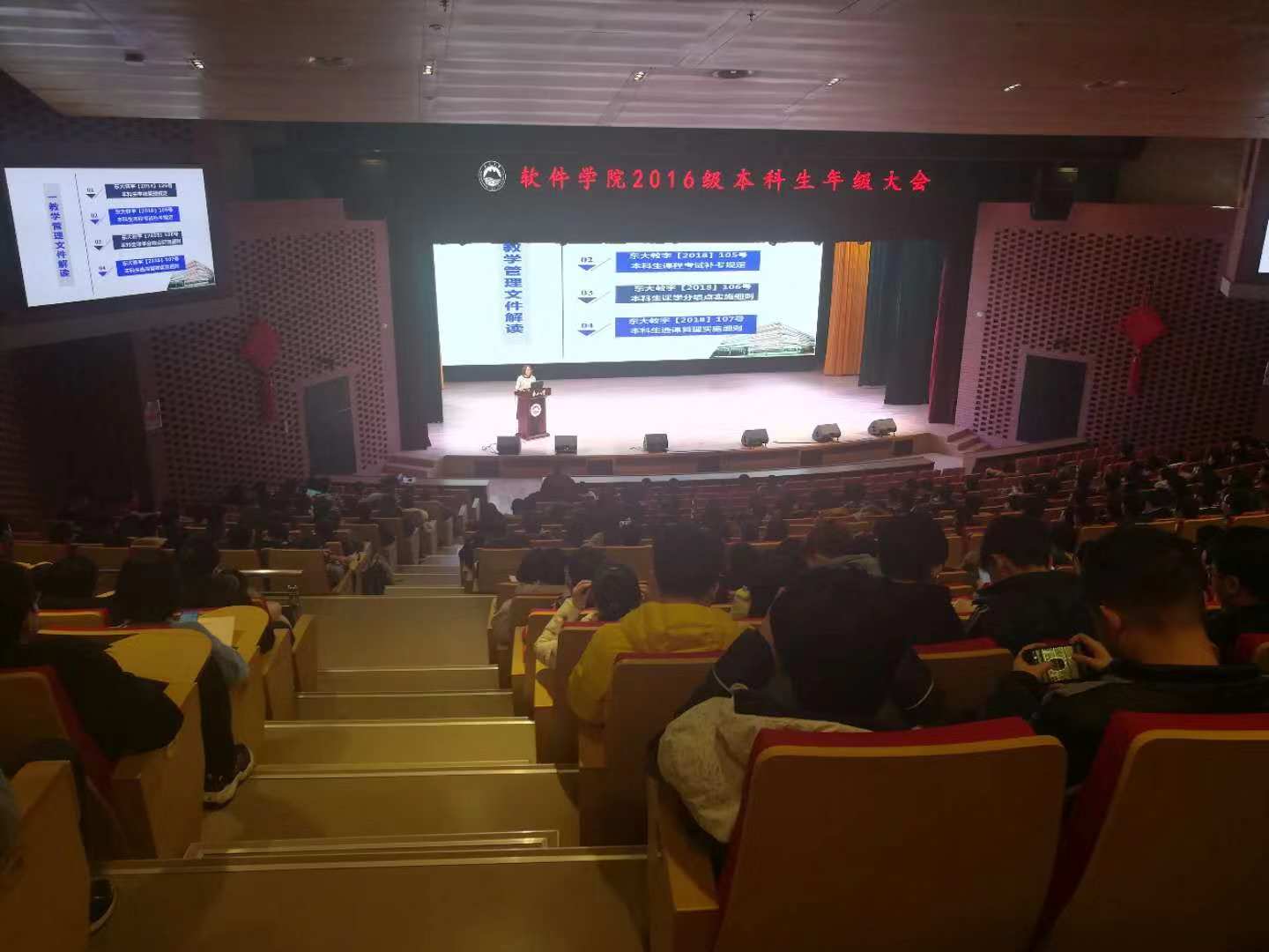 球王会体育官方网教学办和学生办协同合作,从12月8日起至21日,在浑南校区图书馆学术报告厅,分阶段分年级分别召开了在校生各年级全员参与的各年级大会,副院长程维和党委副书记兼副院长刘春风分别就教学管理和学生管理工作讲话,院长助理王瑞平、各专业系主任及教师、教学办本科教学相关人员、学生办各年级辅导员参加大会。