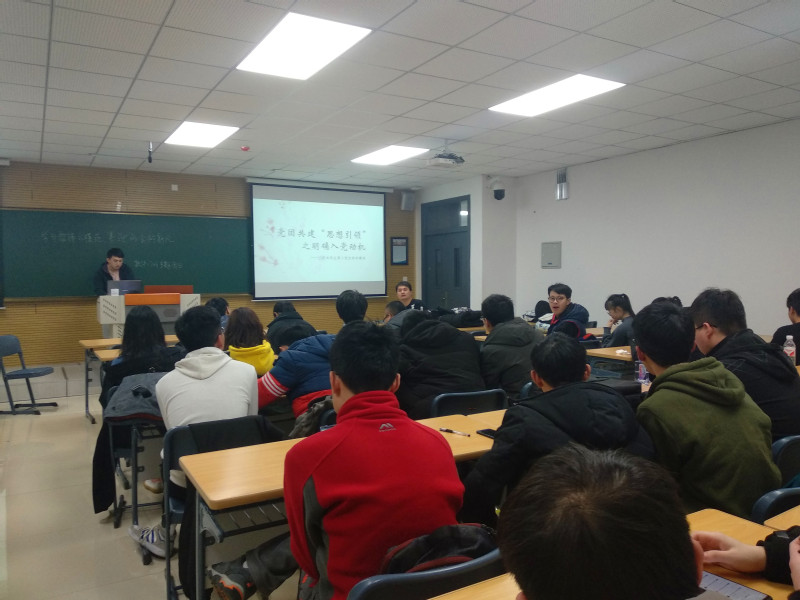 2019年3月17日,球王会体育官方网党团共建“思想引领”工程——党员进团日活动拉开帷幕。为深入学习贯彻习近平新时代中国特色社会主义思想和党的十九大精神,进一步发挥党团共建“思想引领”工程的旗帜作用,2015级本科生第二党支部党员李搏洋,2017级硕士第一党支部党员李鲍分别参加了软件工程1706团支部、软日1801团支部主题团日活动。李搏洋以“明确入党动机”为主题向同学们分享了自己的入党历程,引导同学们应明确入党动机,积极向党组织靠拢,李鲍以“引领新风尚,铸就新梦想”为主题,向同学们介绍了研究生阶段的学习特点,鼓励同学们要加强自身政治理论学习和专业学习,树立远大的理想抱负。主体团日结束后,团员们纷纷表示受益匪浅,也非常希望有党员能够参与主题团日活动。