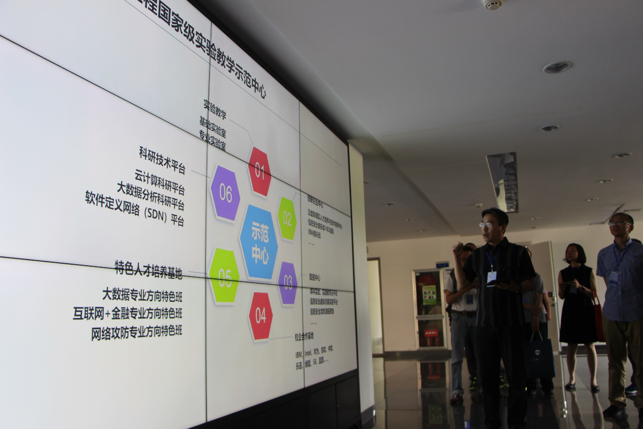 开幕式结束后,与会领导及嘉宾对球王会体育官方网国家级实验教学示范中心进行了参观,并在上午开展了以“一流本科专业建设”为主题的研讨会,会议由球王会体育官方网副院长于瑞云主持。球王会体育官方网院长张斌,上海交通大学球王会体育官方网院长臧斌宇、南昌航空大学球王会体育官方网院长舒坚分别就各自学校软件工程专业的建设情况进行详细介绍。东软睿道总裁李印杲以“产教结合,助力高校一流本科专业建设”为题作经验分享。