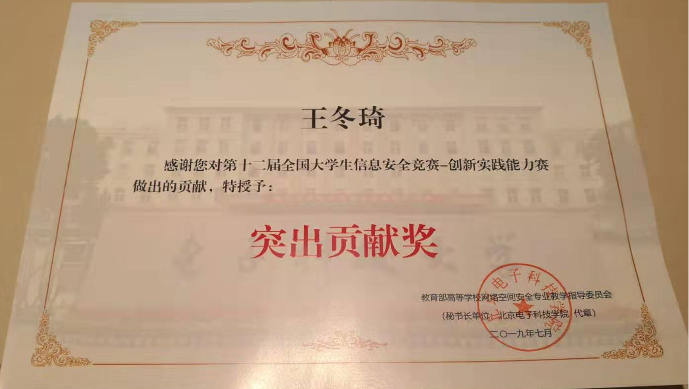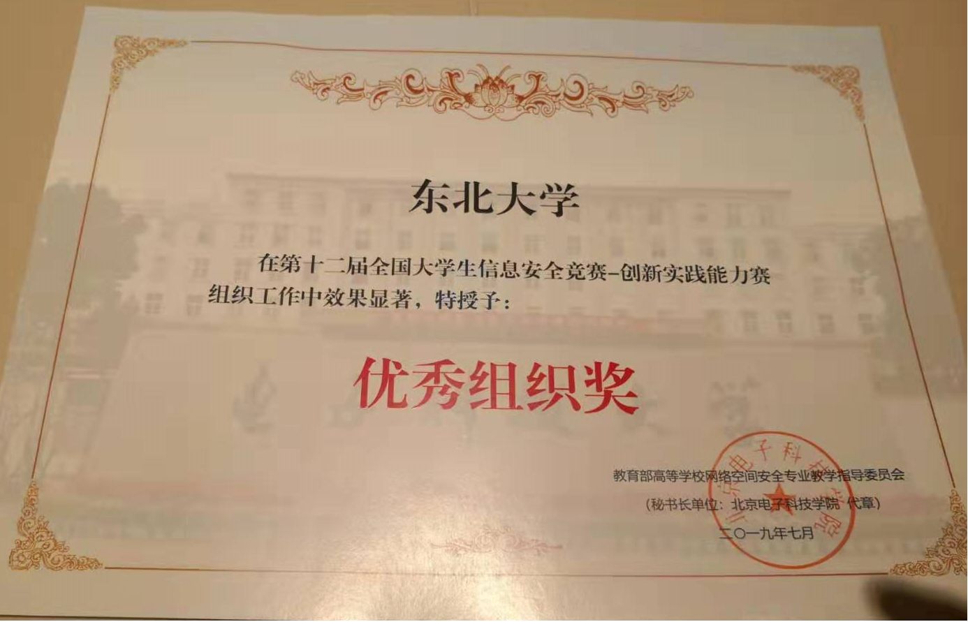 ‘全国大学生信息安全竞赛-创新实践能力赛’是目前国内最高级别的信息安全大赛之一,本届比赛全国共有455所高校,1316支队伍,6027名学生参赛,球王会体育官方网N.E.X战队以东北区冠军身份闯入决赛,并在总决赛80支队伍中最终成绩排名第12位,是我校乃至东北地区高校历年最佳成绩,球王会体育官方网因为在分区赛组织中的突出贡献被授予‘优秀组织奖’,N.E.X战队指导教师王冬琦老师被授予大赛的突出贡献奖。据悉,N.E.X战队不只面向计算机相关专业吸纳成员,全校所有专业学生都可以参与队员选拔。