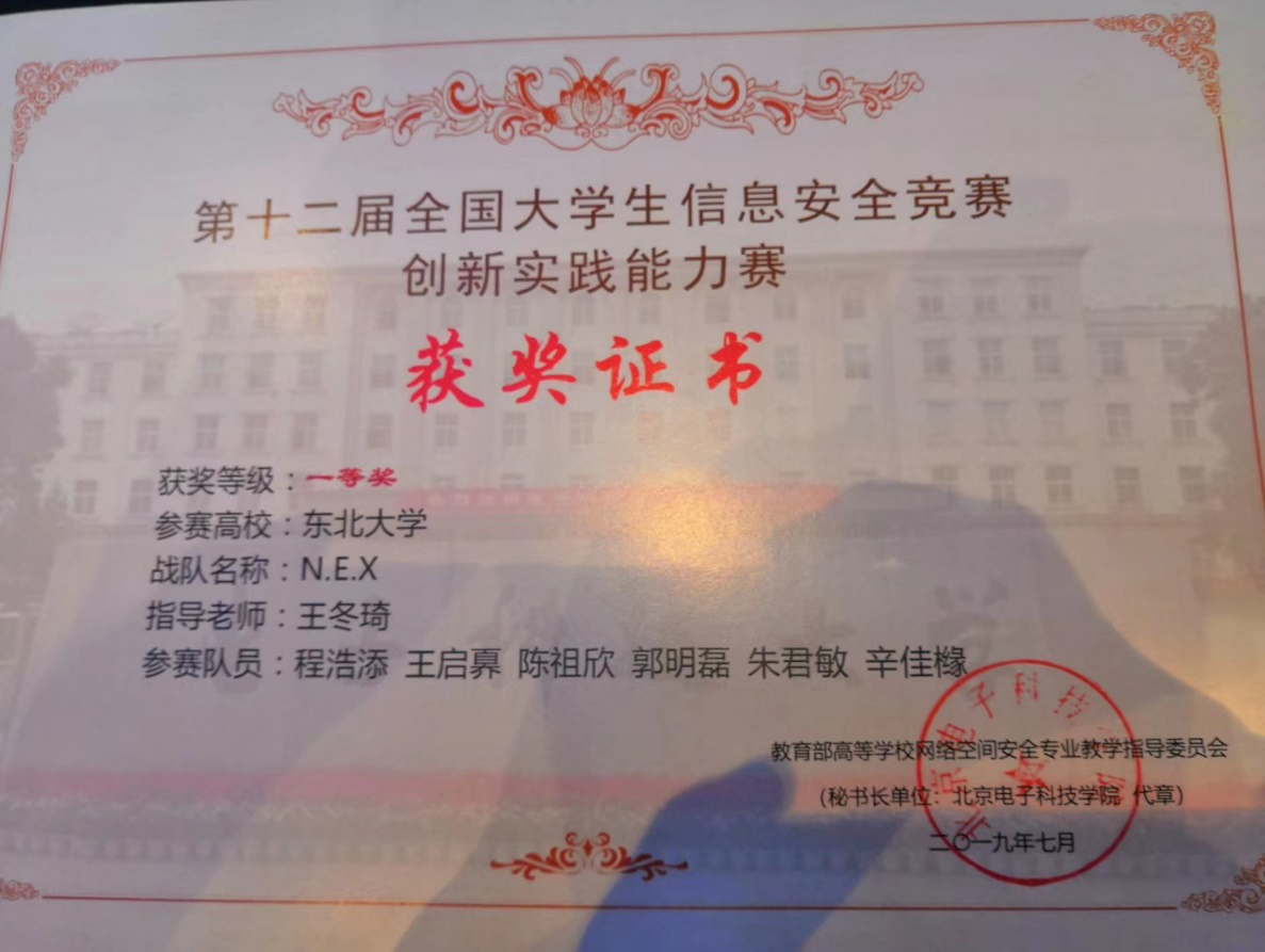 7月26日-27日,由教育部高等学校网络空间安全专业教学指导委员会主办,电子科技大学承办的第十二届全国大学生信息安全竞赛-创新实践能力赛总决赛在成都举行,由我校球王会体育官方网信息安全系学生组成的N.E.X和NEEE战队经过艰苦鏖战分别荣获一等奖和三等奖!