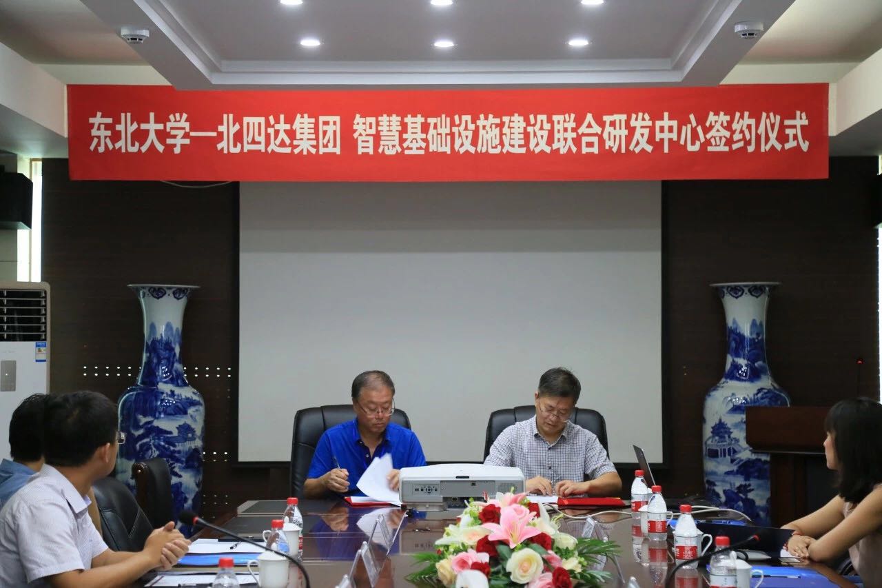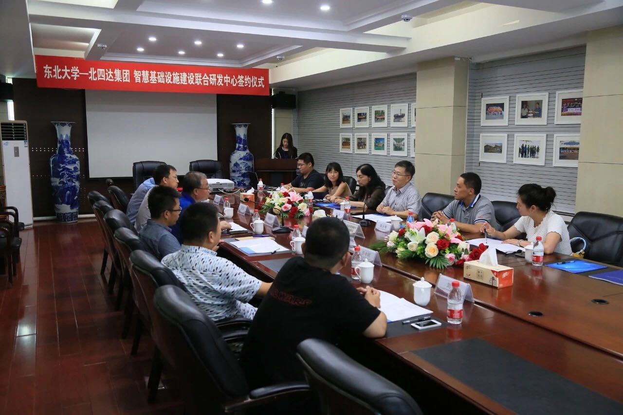 2019年8月16日,球王会体育官方网球王会体育官方网与北四达集团智慧基础设施建设联合研发中心签约仪式在北四达总部四楼融合发展室举行。院长张斌、泛虚拟现实创新中心主任高天寒、泛虚拟现实创新中心专任教师董傲霜、院办主任陈晨、教学办张骁以及三位优秀学生代表周松、江欣蓓和杨振豪,北四达集团董事长郭德军先生、总经理刘国立先生、副总经理兼道桥市政板块及数字科技板块总经理张鑫先生、金融板块总经理王今明先生、展示设计总包板块总工程师李承高先生、数字科技板块总工程师兼系统开发部主任刘炯先生共同出席了本次签约仪式。签约仪式由北四达集团行政总监张秀菲主持。