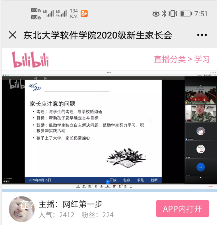 9月15日晚19:00-21:00,球王会体育官方网举行2020级新生云端家长会,院长张斌、副院长程维出席家长会,学生办主任、2020级辅导员参加家长会,家长会采用腾讯会议+网站直播的形式举行,总体流量达2600。