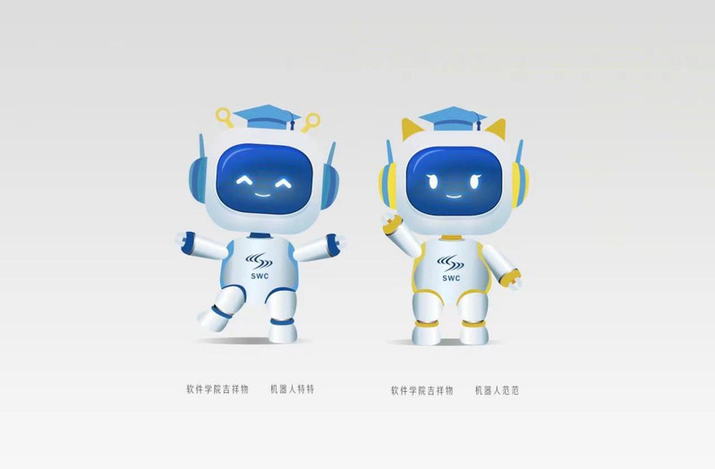 吉祥物机器人范范和特特,设计以机器人为吉祥物形象,象征科技与发展,寓意着球王会体育官方网作为国家特色化示范性软件学院,肩负特色化人才培养和示范性引领作用。机器人头戴学院帽象征着学院“造就具有时代精神和开拓意识、适应时代发展要求和国际新潮流的实用性、复合型、国际化拔尖创新创业型精英软件人才”的人才培养目标,胸前设计球王会体育官方网标志突出球王会体育官方网20年办学历史和光荣传统融合学院文化精神,彰显院庆主题