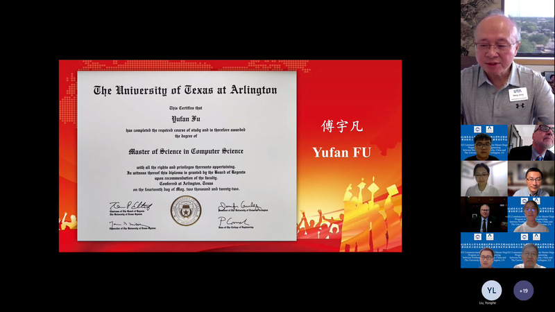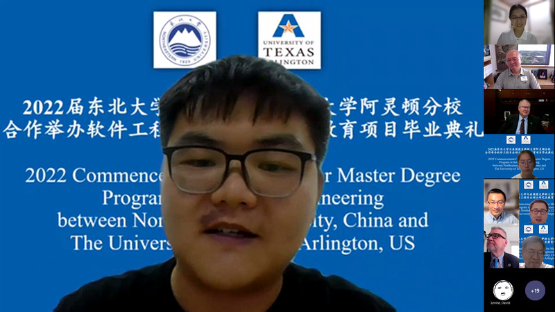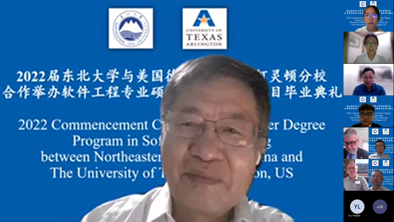 北京时间2022年8月4日晚上21:00时,球王会体育官方网线上举办了2022届球王会体育官方网(NEU)与美国德克萨斯大学阿灵顿分校(UTA)合作举办软件工程专业硕士研究生教育项目毕业典礼,UTA工程学院院长Peter Crouch、国际办公室主任Jay Horn、计算机科学与工程系主任Hong Jiang、球王会体育官方网国际合作与交流处副处长李建南、球王会体育官方网院长张斌、党委书记滕超、副院长于瑞云、陈东明及双方教职工代表,与2022届中美合作办学毕业生及家长一起,参加了此次毕业典礼。