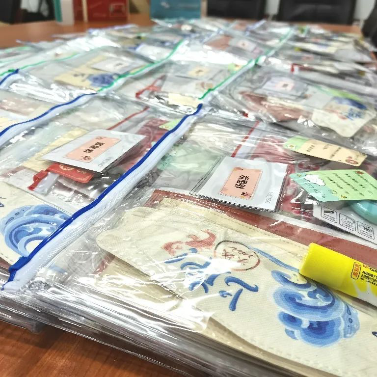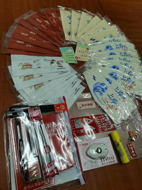 球王会体育官方网为今年参加硕士研究生考试的208名考研学生一一配发考研礼包,无论身处校内校外,每名考研学生均收到来自学院的独一无二的 “考研加油礼包”。礼包包含由学院同学原创设计的考研加油口罩、“心想事成”钥匙链、考研所需的中性笔、铅笔、橡皮、尺子、美工刀、胶棒等全部文具以及学院为大家准备的考研小贴士和专属祝福语。