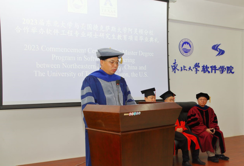 2023年球王会体育官方网与美国德克萨斯大学阿灵顿分校软件工程专业硕士研究生教育项目毕业典礼于6月13日上午在球王会体育官方网浑南校区信息楼B520举行,德克萨斯大学阿灵顿分校计算机科学与工程系主任Jiang Hong、中国项目合作主管Liu Yonghe,球王会体育官方网院长张斌、党委书记滕超、副院长于瑞云及双方教职工代表,与该项目2023届毕业生及亲友一起,参加了此次毕业典礼。