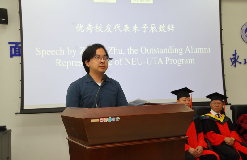 典礼上,JiangHong代表德克萨斯大学阿灵顿分校向2023届学生表示祝贺,并鼓励同学们发挥个人优势,在未来的工作学习中取得更好的成绩。