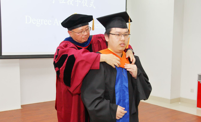 在学位授予环节,JiangHong和张斌分别为鲍海璐等27名毕业生佩戴硕士学位披肩,并授予德克萨斯大学阿灵顿分校计算机科学硕士学位。