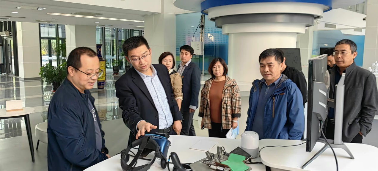 10月25日下午,教育部高等学校国家级实验教学示范中心联席会首席技术专家郝永胜教授一行五人来到我校软件工程国家级实验教学示范中心指导建设工作。郝永胜教授是教育部高等学校国家级实验教学示范中心联席会首席技术专家、中国虚拟现实与可视化产业技术创新战略联盟(CVRVT)教育委员会主任。校资产与实验室管理处处长张海峰、副处长刘一,球王会体育官方网院长张斌、党委书记滕超、副院长程维、院长助理郭军出席活动。