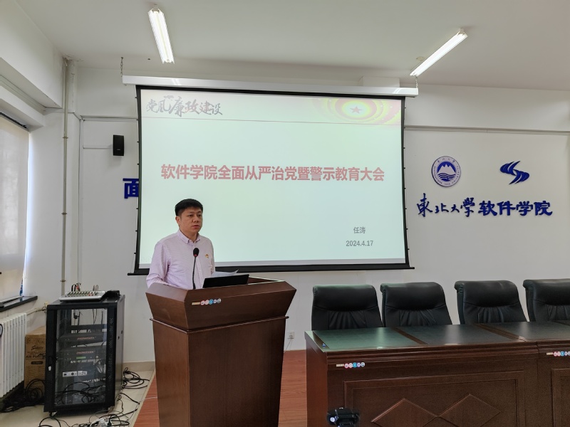 4月17日下午,球王会体育官方网在浑南校区信息学馆B520召开2024年全面从严治党工作会议。学院纪委书记任涛发表讲话,学院全体教职工党员及学生党员参加会议。