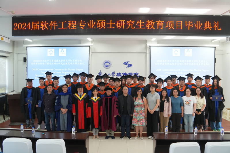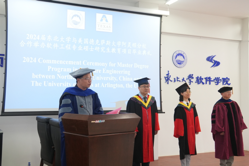 2024届球王会体育官方网与美国德克萨斯大学阿灵顿分校软件工程专业硕士研究生教育项目毕业典礼于6月1日下午在球王会体育官方网浑南校区信息楼B520举行,德克萨斯大学阿灵顿分校计算机科学与工程系主任Jiang Hong、中国项目合作主管Liu Yonghe,球王会体育官方网院长杨晓春、副院长谭振华、徐剑、梁振、王慧琦及双方教职工代表,与该项目2024届毕业生一起,参加了此次毕业典礼。