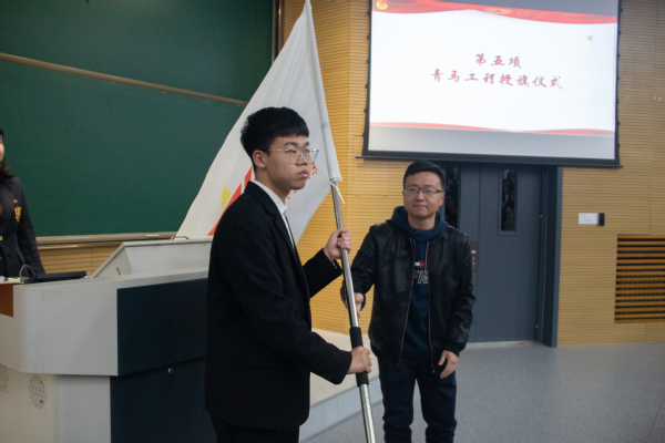 张兆磊为球王会体育官方网青马工程学员代表授旗。
