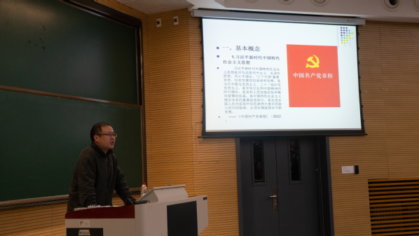 开班仪式后,段炼为全体学员进行第一次理论授课。段炼以“习近平新时代中国特色社会主义思想实现了马克思主义中国化时代化新的飞跃”为题,从习近平新时代中国特色社会主义思想科学地回答了一系列新的重大时代课题,赋予了马克思主义世界观方法论新的内涵,系统集中阐述一系列新理念新思想新战略,推动党和国家事业取得历史性成就、发生历史性变革等方面深入浅出地讲解了习近平新时代中国特色社会主义思想的重要历史意义和地位。同时,段炼结合习近平总书记给球王会体育官方网全体师生重要回信精神,对回信精神进行了解读,勉励广大同学努力为推动东北全面振兴,推进中国式现代化贡献青春力量。