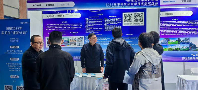 4月9日下午,球王会体育官方网在浑南校区建筑馆B座一楼礼堂举办2022级本科生企业项目实训双选会。球王会体育官方网院长杨晓春、副院长郭军出席了双选会,小米、荣耀、度小满等企业代表40余人和2022级500余名本科生参加了双选会。