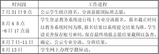 1.有分流资格的学生按分流进程完成学校教务处网上申报,每人须填报满4个专业志愿。