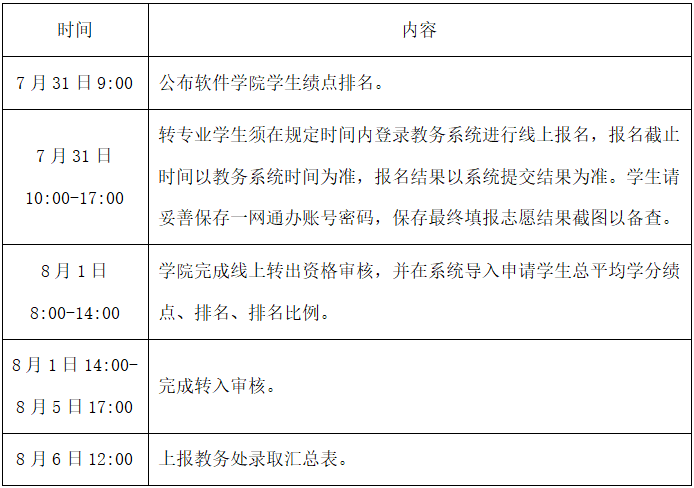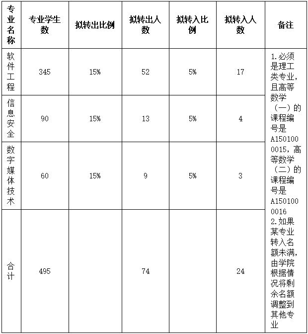 6.学院在官方网站对拟转出学生的信息(主要包括学生姓名、原专业、拟转入专业、专业成绩排名、支撑材料)进行公示,公示期不少于3个工作日。